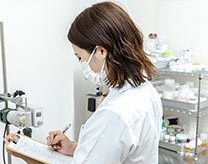 私たち研究開発部では、日々変化する情勢や市場ニーズに対応するため常にアンテナを張り、情報収集を行っています。特に化粧品に関してはトレンドに変化が激しいため、先を見据えた研究開発やDMAにしかできない処方を意識しております。また、営業担当とコミュニケーションを図りお客様のご要望と消費者の方々のニーズにあった製品化を行っています。